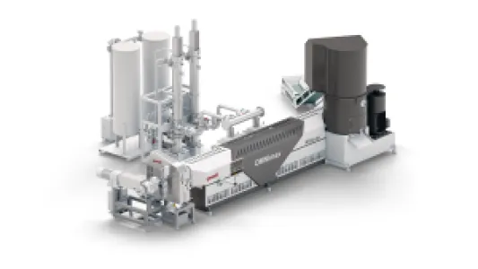 With over 40 years of experience and over 100 patents, Gneuss is a supplier of innovative solutions for the recycling industry. The patented MRS extrusion technology offers new possibilities regarding the efficient devolatilization of PET, PS, nylon or polyolefins. In combination with Gneuss’ process of constant and fully automatic screen changers and high-quality pressure and temperature sensors, efficient processing of highly contaminated materials becomes possible. The fully automatic Rotary Filtration Systems and screen changers operate continuously and provide constant pressure with or without back-flushing. The new series of turnkey OMNI recycling machines is customizable for handling demanding applications and achieving the highest quality requirements.