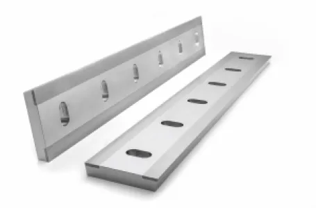Cutting rotors made of tungsten carbide (soldered and clamped, clamped called KRONOS), PM-steel, Stellite and tool steel (WS1 and WS2), cutting blades (counter knives) made of tungsten carbide, ceramic and PCD and also feed rolls.