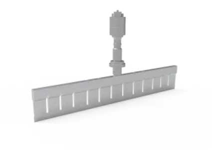 Ultrasonic cutting sonotrodes:The sonotrodes conduct the ultrasonic oscillation into the workpiece and are individually tailored to size according to the application. Shape and contour can be adapted to your requirements. The development and production is based on the finite element method (FEM), which ensures optimum ultrasonic processing of the applications. SONOTRONIC offers cutting sonotrodes with a blade length of up to 750 mm and a cutting height of up to 170 mm.