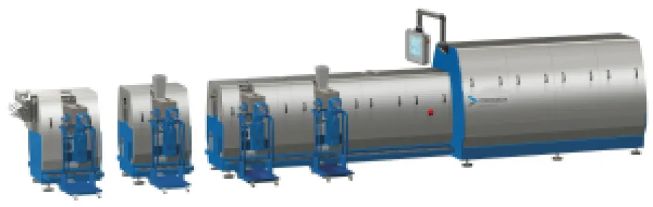 Co-rotating twin-screw extruders for high-performance technical plastics, with machine sizes from 18 to 82 mm and throughput ranges from 4 kg/h to 4 tons/h, designed to meet customers’ production needs.